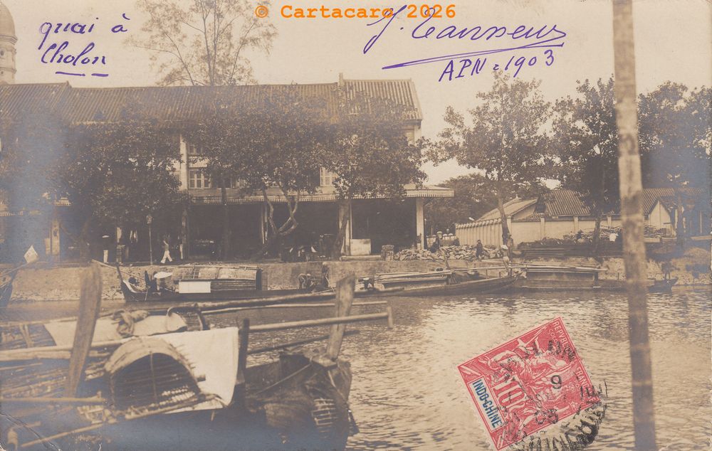 L’une immortalise Cholon, quartier animé et emblématique de Saïgon, tandis que l’autre capture une scène paisible : des sampans amarrés au bord d’une petite baie, à l’abri des regards. Ces clichés, pris par des amateurs passionnés de photographie, étaient bien plus que de simples images. Ils devenaient des souvenirs tangibles, des fragments de vie partagés avec la famille et les proches restés en métropole. À travers ces envois, c’était toute une passion qui s’exprimait, mêlant curiosité, art et désir de communication.