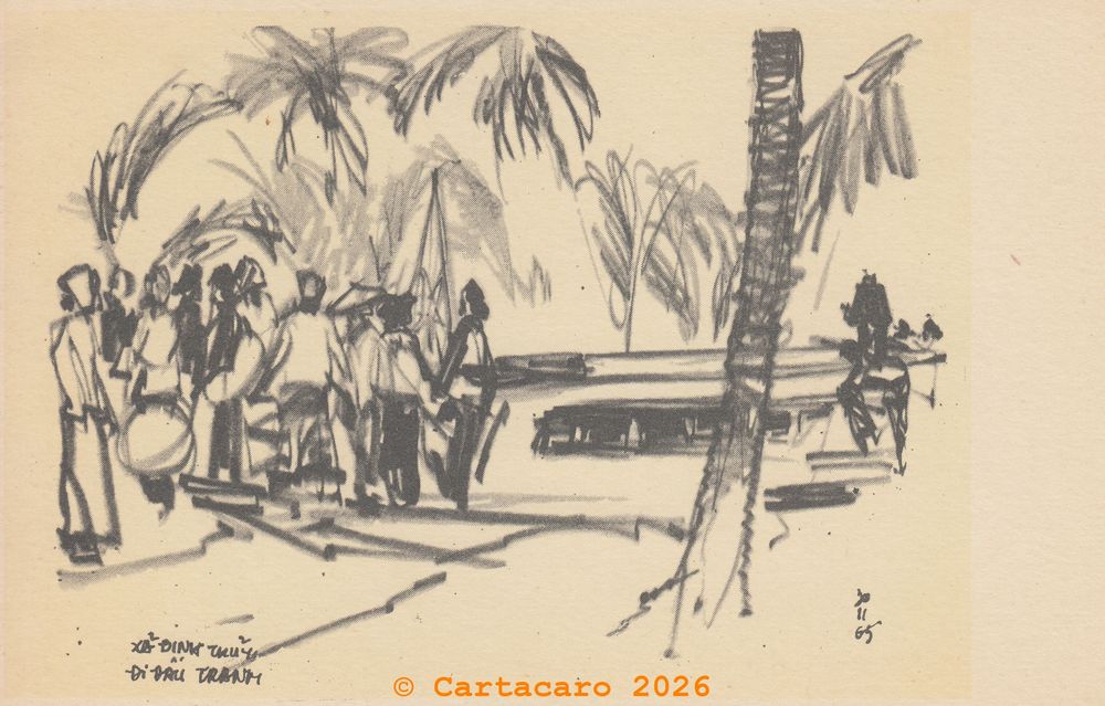 Trois dessins de Huynh Phuong Dong (1965) illustrent le quotidien d’une population unie, déterminée à affronter l’ennemi pour reconquérir son autonomie et sa liberté